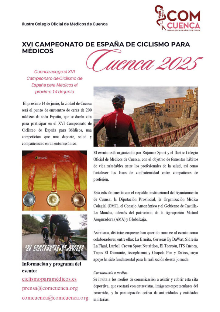Convocatoria a prensa para el xvi campeonato de España de ciclismo para médicos